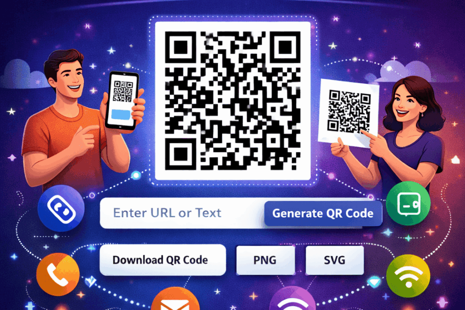Free QR Code Generator Create customizable QR codes for URLs, text, emails, phone numbers, WiFi networks, and more. Download high-quality QR codes in PNG, SVG, or JPG format. Content Type 🔗 URL 📝 Text 📧…